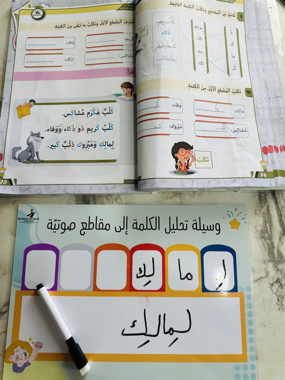 تحليل الكلمة إلى مقاطع صوتيّة من أفضل الطرق لتعلم كلمات جديدة أو كلمات يستصعب الطالب قراءتها تحتوي الوسيلة على لوحتين لكتابة الكلمة و 6 بطاقات لكتابة المقاطع الصوتيّة